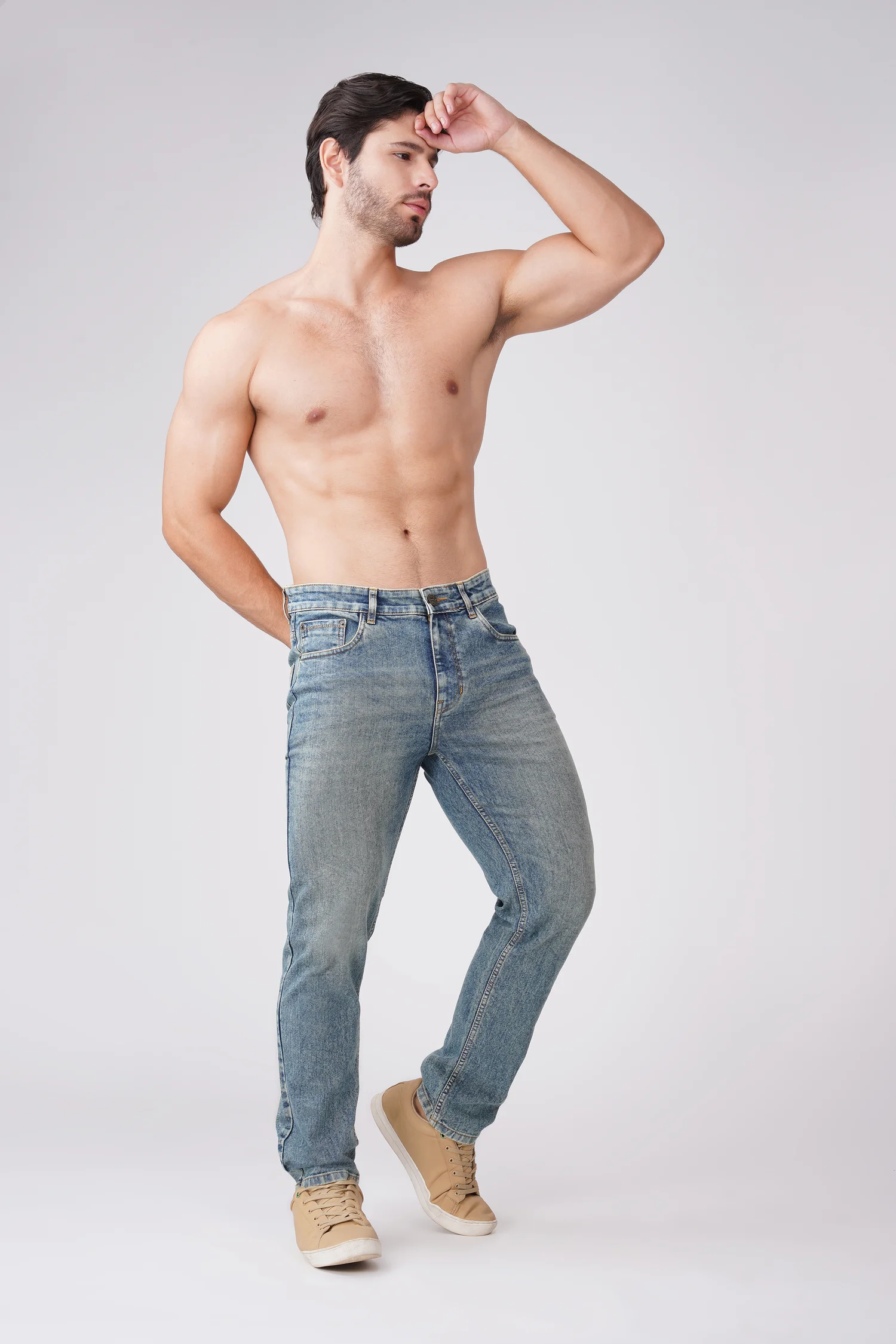 Elevate your casual look with our Men’s Faded Light Blue Regular Fit Jeans S103. Soft-stretch denim, trendy color, and all-day comfort—style redefined!